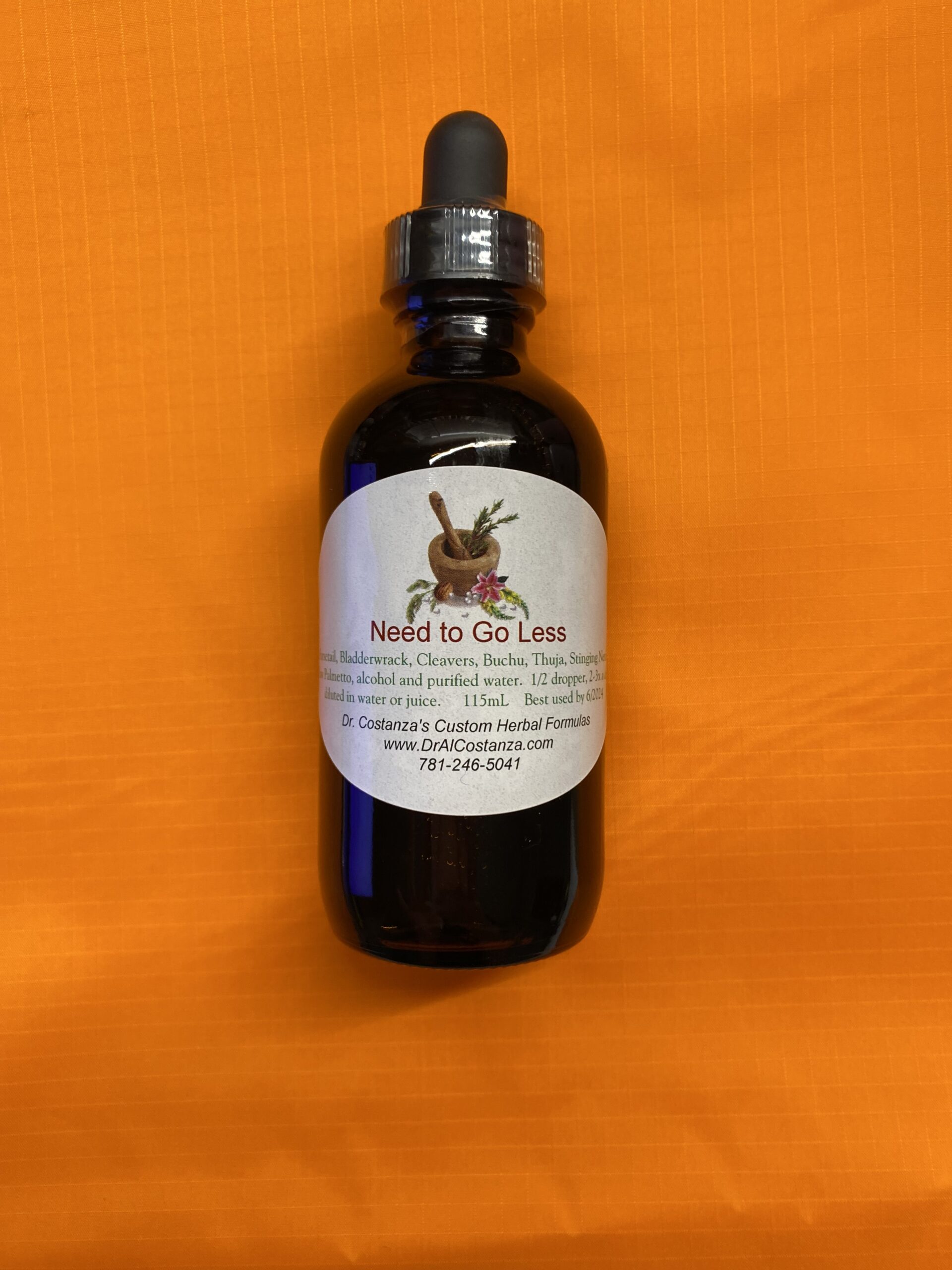 4 oz glass dropper bottle of liquid herbal extract blend (Horsetail, Bladderwrack, Cleavers, Buchu, Thuja, Stinging Nettle, Saw Palmetto, alcohol and purified water) with a suggested use of 1/2 dropper 2-3 x per day diluted in water or juice. This formula was designed to help ease symptoms of over-active bladder and urinary incontinence. *