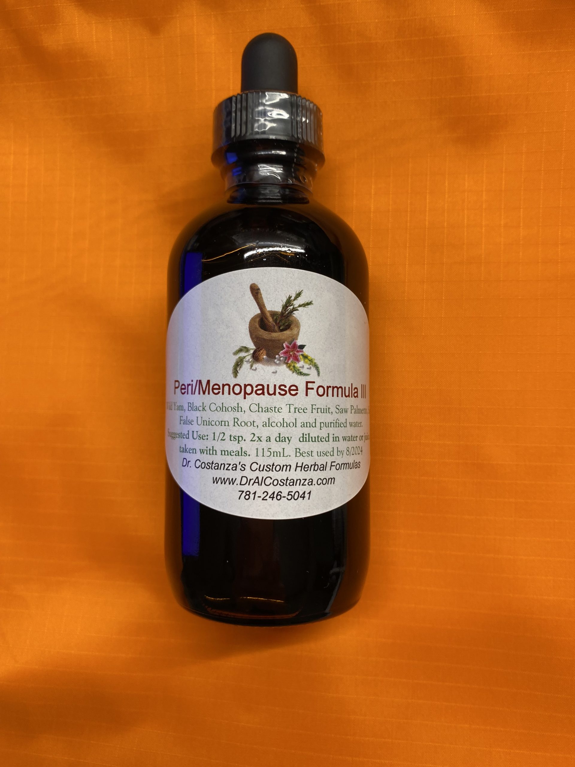 4 oz glass dropper bottle of special herbal extract blend (Wild Yam, Black Cohosh, Chaste Tree Fruit, Saw Palmetto, False Unicorn Root, alcohol and purified water) with a suggested use of 1/2 tsp 2x/day, intended to be diluted in water or juice.* Designed to help with menopausal symptoms associated with low estrogen and high testosterone (need for hormonal phytomodulators)